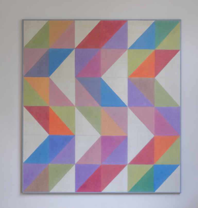 Gillian Bolton (b. 1996) is a Dutch painter based in The Hague. A graduate of the Royal Academy of Art, The Hague (KABK, 2024), his work explores the intersection of structure and emotion through geometric abstraction. Drawing inspiration from the ways form and color operate in space and communicate with a viewer, Gillian investigates these elements within grid systems: composing rhythmic, layered works that reveal a subtle tension between chaos and order.